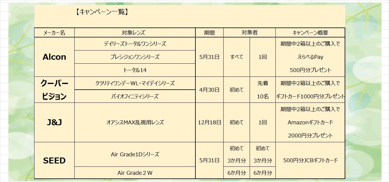 お得にコンタクトレンズが買えるキャンペーン一覧